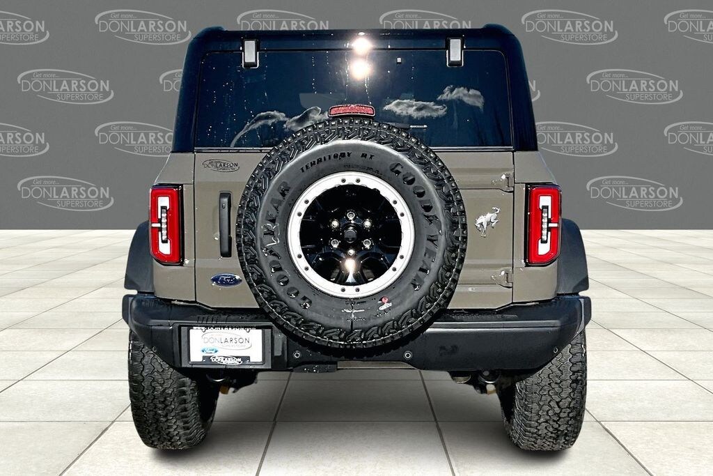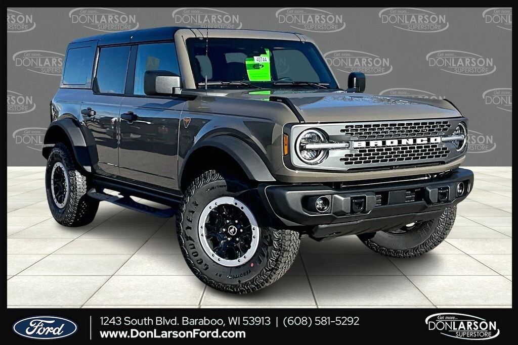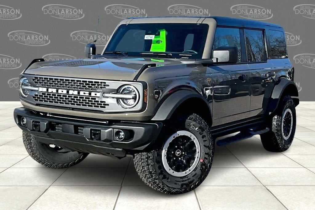 Marsh Gray 4-Wheel Disc Brakes, 4.7 Axle Ratio, 7 Speakers, ABS brakes, Air Conditioning, Alloy wheels, AM/FM radio: SiriusXM with 360L, AM/FM Stereo, Auto High-beam Headlights, Auto-dimming Rear-View mirror, Brake assist, Compass, Delay-off headlights, Driver door bin, Driver vanity mirror, Dual front impact airbags, Dual front side impact airbags, Electronic Stability Control, Emergency communication system: 911 Assist, Exterior Parking Camera Rear, Front anti-roll bar, Front Bucket Seats, Front Center Armrest, Front fog lights, Front reading lights, Front wheel independent suspension, Fully automatic headlights, Heated door mirrors, Heated front seats, Heated steering wheel, Illuminated entry, Integrated roll-over protection, Internet access capable: FordPass Connect, Leather Shift Knob, Low tire pressure warning, Marine Grade Vinyl Heated Bucket Seats, Occupant sensing airbag, Outside temperature display, Overhead airbag, Overhead console, Panic alarm, Passenger door bin, Passenger vanity mirror, Power door mirrors, Power steering, Power windows, Radio data system, Remote keyless entry, Security system, SiriusXM w/360L, Speed control, Split folding rear seat, Steering wheel mounted audio controls, SYNC 4, Tachometer, Telescoping steering wheel, Tilt steering wheel, Traction control, Trip computer, Variably intermittent wipers, Voltmeter, Wheels: 17" Carbonized Gray-Painted Aluminum. 2025 Ford Bronco Badlands 4WD 10-Speed Automatic 2.7L EcoBoost V6