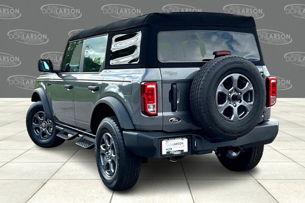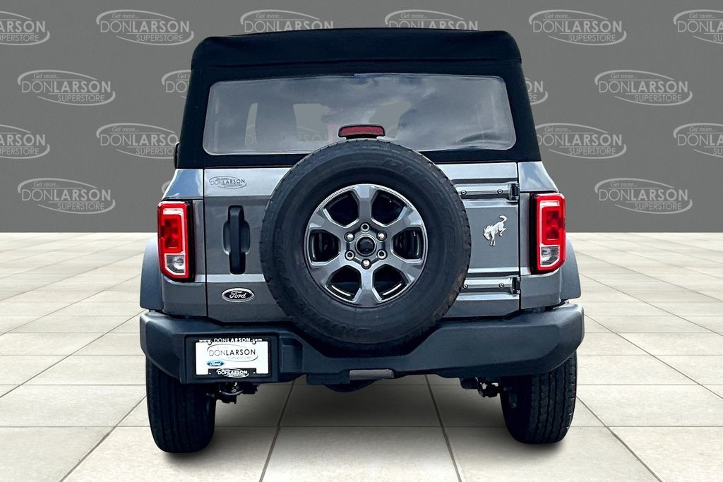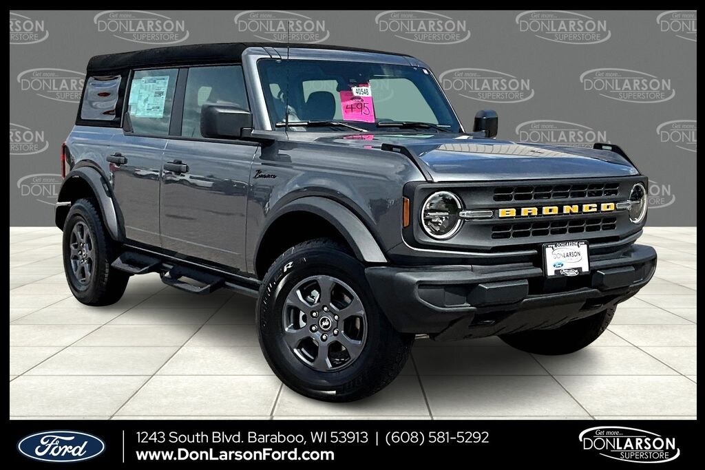 Carbonized Gray Metallic 4-Wheel Disc Brakes, 4.46 Axle Ratio, 7 Speakers, ABS brakes, Air Conditioning, AM/FM radio: SiriusXM with 360L, AM/FM Stereo, Auto High-beam Headlights, Brake assist, Cloth Bucket Seats, Compass, Delay-off headlights, Driver door bin, Driver vanity mirror, Dual front impact airbags, Dual front side impact airbags, Electronic Stability Control, Emergency communication system: 911 Assist, Equipment Group 101A, Exterior Parking Camera Rear, Front anti-roll bar, Front Bucket Seats, Front Center Armrest, Front License Plate Bracket, Front reading lights, Front wheel independent suspension, Fully automatic headlights, Heated door mirrors, Illuminated entry, Integrated roll-over protection, Low tire pressure warning, Occupant sensing airbag, Outside temperature display, Overhead airbag, Overhead console, Panic alarm, Passenger door bin, Passenger vanity mirror, Power door mirrors, Power steering, Power windows, Radio data system, Remote keyless entry, Security system, SiriusXM w/360L, Speed control, Split folding rear seat, Steering wheel mounted audio controls, SYNC 4, Tachometer, Telescoping steering wheel, Tilt steering wheel, Traction control, Trip computer, Variably intermittent wipers, Wheels: 16" Bright Polished Silver-Painted Steel. 2025 Ford Bronco 4WD 10-Speed Automatic 2.3L EcoBoost I-4