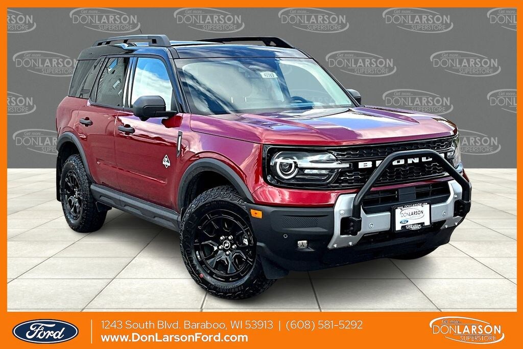 Ruby Red 4-Wheel Disc Brakes, 6 Speakers, ABS brakes, Air Conditioning, Alloy wheels, AM/FM radio: SiriusXM, AM/FM Stereo, Auto High-beam Headlights, Auto-dimming Rear-View mirror, Automatic temperature control, Brake assist, Compass, Delay-off headlights, Driver door bin, Driver vanity mirror, Dual front impact airbags, Dual front side impact airbags, Electronic Stability Control, Emergency communication system: SYNC 4 911 Assist, Four wheel independent suspension, Front anti-roll bar, Front Bucket Seats, Front Center Armrest, Front Driver/Passenger Seat Back Map Pockets, Front dual zone A/C, Front fog lights, Front reading lights, Fully automatic headlights, Garage door transmitter, Heated door mirrors, Heated front seats, Heated steering wheel, Illuminated entry, Knee airbag, Low tire pressure warning, Memory seat, Occupant sensing airbag, Outside temperature display, Overhead airbag, Overhead console, Panic alarm, Passenger door bin, Passenger vanity mirror, Power door mirrors, Power driver seat, Power passenger seat, Power steering, Power windows, Premium Trimmed Front Bucket Seats w/Ebony/Roast, Radio data system, Rain sensing wipers, Rear anti-roll bar, Rear Parking Sensors, Rear reading lights, Rear seat center armrest, Rear window defroster, Rear window wiper, Remote keyless entry, Security system, SiriusXM, Speed control, Speed-sensing steering, Speed-Sensitive Wipers, Split folding rear seat, Steering wheel mounted audio controls, SYNC 4 w/Enhanced Voice Recognition, Tachometer, Telescoping steering wheel, Tilt steering wheel, Traction control, Trip computer, Variably intermittent wipers, Wheels: 18" Ebony Black-Painted Aluminum. 25/30 City/Highway MPG 2025 Ford Bronco Sport Outer Banks 4WD 8-Speed Automatic 1.5L EcoBoost