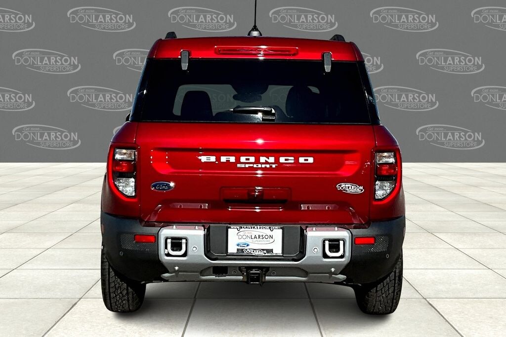 Ruby Red 4-Wheel Disc Brakes, 6 Speakers, ABS brakes, Air Conditioning, Alloy wheels, AM/FM radio: SiriusXM, AM/FM Stereo, Auto High-beam Headlights, Automatic temperature control, Brake assist, Cloth w/Easy-to-Clean Front Bucket Seats, Compass, Delay-off headlights, Driver door bin, Driver vanity mirror, Dual front impact airbags, Dual front side impact airbags, Electronic Stability Control, Emergency communication system: SYNC 4 911 Assist, Four wheel independent suspension, Front anti-roll bar, Front Bucket Seats, Front Center Armrest, Front reading lights, Fully automatic headlights, Heated door mirrors, Illuminated entry, Knee airbag, Low tire pressure warning, Occupant sensing airbag, Outside temperature display, Overhead airbag, Overhead console, Panic alarm, Passenger door bin, Passenger vanity mirror, Power door mirrors, Power steering, Power windows, Radio data system, Rear anti-roll bar, Rear Parking Sensors, Rear reading lights, Rear seat center armrest, Rear window defroster, Rear window wiper, Remote keyless entry, Security system, SiriusXM, Speed control, Speed-sensing steering, Speed-Sensitive Wipers, Split folding rear seat, Steering wheel mounted audio controls, SYNC 4 w/Enhanced Voice Recognition, Tachometer, Telescoping steering wheel, Tilt steering wheel, Traction control, Trip computer, Variably intermittent wipers, Wheels: 17" Carbonized Gray-Painted Aluminum. 25/30 City/Highway MPG 2025 Ford Bronco Sport Big Bend 4WD 8-Speed Automatic 1.5L EcoBoost