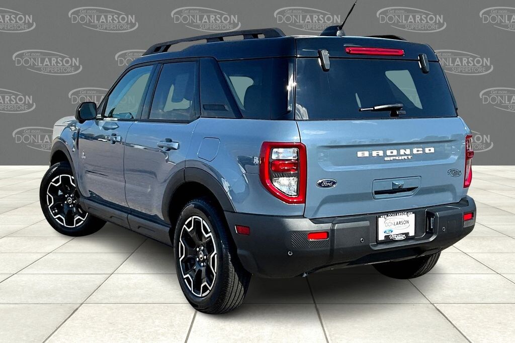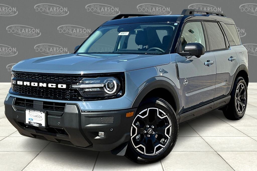 Azure Gray Metallic Tri-Coat 360-Degree Camera w/Trail & Split View, 4-Wheel Disc Brakes, 6 Speakers, ABS brakes, Air Conditioning, Alloy wheels, AM/FM radio: SiriusXM, AM/FM Stereo, Auto High-beam Headlights, Auto-dimming Rear-View mirror, Automatic temperature control, B&O Sound System by Bang & Olufsen, Brake assist, Cargo Management System (Shelf/Divider/Table), Compass, Connected Navigation, Delay-off headlights, Driver door bin, Driver vanity mirror, Dual front impact airbags, Dual front side impact airbags, Electronic Stability Control, Emergency communication system: SYNC 4 911 Assist, Equipment Group 300A, Four wheel independent suspension, Front & Rear Floor Liners w/o Carpet Mats, Front anti-roll bar, Front Bucket Seats, Front Center Armrest, Front Driver/Passenger Seat Back Map Pockets, Front dual zone A/C, Front fog lights, Front License Plate Bracket, Front Parking Sensors, Front reading lights, Fully automatic headlights, Garage door transmitter, HD Radio, Heated door mirrors, Heated front seats, Heated steering wheel, Illuminated entry, Knee airbag, Low tire pressure warning, Memory seat, Occupant sensing airbag, Outer Banks Tech Package+, Outside temperature display, Overhead airbag, Overhead console, Panic alarm, Passenger door bin, Passenger vanity mirror, Power door mirrors, Power driver seat, Power Moonroof, Power passenger seat, Power steering, Power windows, Premium Trimmed Front Bucket Seats w/Ebony/Roast, Radio data system, Rain sensing wipers, Rear anti-roll bar, Rear Parking Sensors, Rear reading lights, Rear seat center armrest, Rear window defroster, Rear window wiper, Remote keyless entry, Reverse Brake Assist, Security system, SiriusXM, Speed control, Speed-sensing steering, Speed-Sensitive Wipers, Split folding rear seat, Steering wheel mounted audio controls, SYNC 4 w/Enhanced Voice Recognition, Tachometer, Telescoping steering wheel, Tilt steering wheel, Traction control, Trip computer, Variably intermittent wipers, Wheels: 18" Ebony Black-Painted Aluminum. 25/30 City/Highway MPG 2025 Ford Bronco Sport Outer Banks 4WD 8-Speed Automatic 1.5L EcoBoost