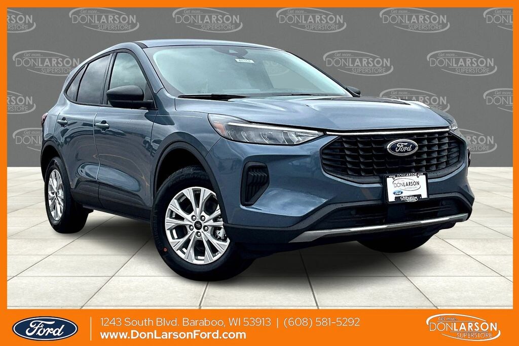 Vapor Blue AWD, 3.81 Axle Ratio, 4-Wheel Disc Brakes, 6 Speakers, ABS brakes, Adaptive Cruise Control w/Stop-and-Go, Air Conditioning, Alloy wheels, AM/FM radio: SiriusXM, AM/FM Stereo, Auto High-beam Headlights, Automatic temperature control, Brake assist, Bumpers: body-color, Cold Weather Package, Compass, Connected Navigation, Delay-off headlights, Driver door bin, Driver vanity mirror, Dual front impact airbags, Dual front side impact airbags, Electronic Stability Control, Emergency communication system: SYNC 4 911 Assist, Equipment Group 200A, Ford Co-Pilot360 Assist+, FordPass Connect, Four wheel independent suspension, Front anti-roll bar, Front Bucket Seats, Front Center Armrest, Front dual zone A/C, Front License Plate Bracket, Front reading lights, Fully automatic headlights, Heated Front Row Seats, Heated Sideview Mirrors, Heated Steering Wheel, Illuminated entry, Intersection Assist, Knee airbag, Low tire pressure warning, Occupant sensing airbag, Outside temperature display, Overhead airbag, Overhead console, Panic alarm, Passenger door bin, Passenger vanity mirror, Power door mirrors, Power Liftgate, Power steering, Power windows, Predictive Speed Assist, Radio data system, Rear anti-roll bar, Rear Parking Sensor, Rear reading lights, Rear seat center armrest, Rear window defroster, Rear window wiper, Rear-View Camera, Remote keyless entry, Remote Starter System, Speed control, Speed-sensing steering, Speed-Sensitive Wipers, Split folding rear seat, Spoiler, Steering wheel mounted audio controls, SYNC 4, SYNC 4 w/Enhanced Voice Recognition, Tachometer, Tech Pack #1, Telescoping steering wheel, Tilt steering wheel, Traction control, Trip computer, Unique Cloth Front Bucket Seats, Variably intermittent wipers, Wheels: 17" Shadow Silver-Painted Aluminum, AWD. 26/32 City/Highway MPG 2025 Ford Escape Active AWD 8-Speed Automatic 1.5L EcoBoost