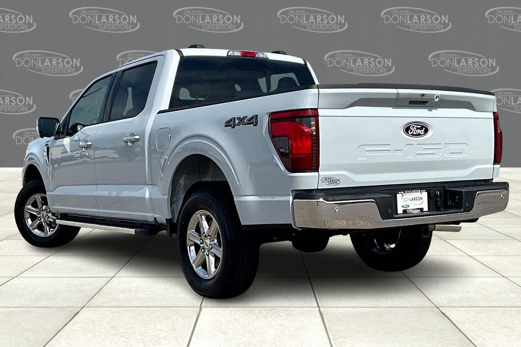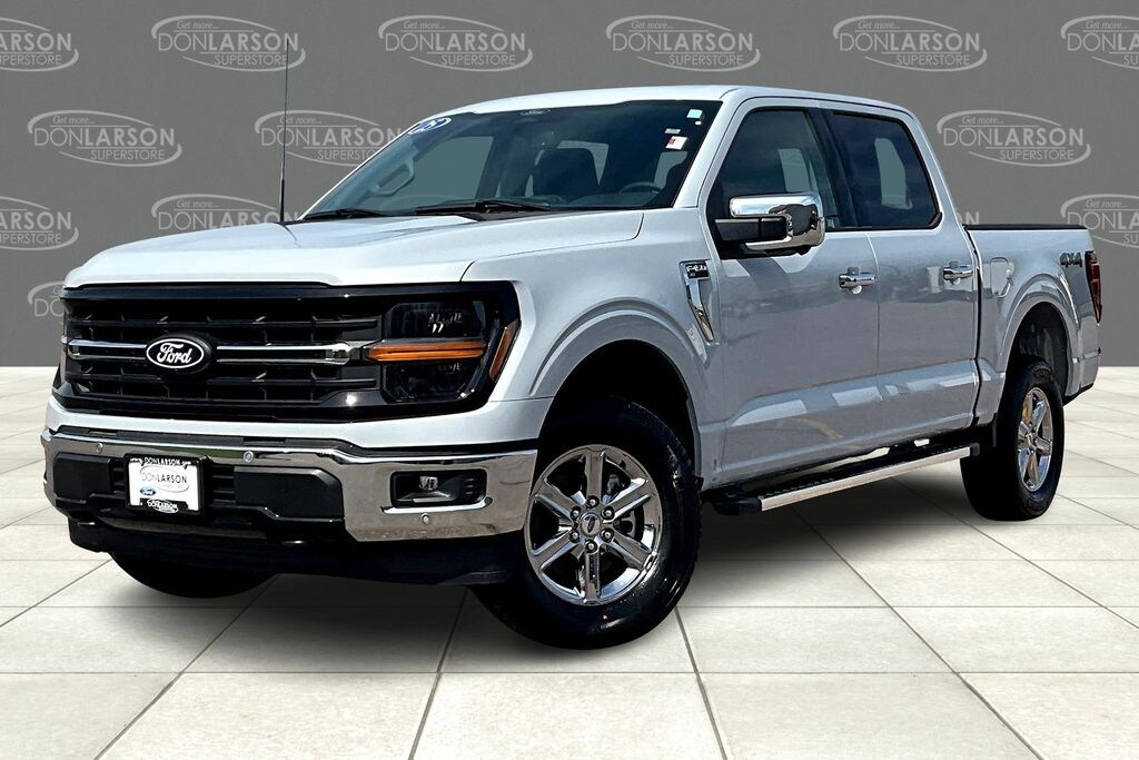 Space White Metallic 4WD, 3.31 Axle Ratio, 360 Degree Camera, 4-Wheel Disc Brakes, 400W Cab & Bed Outlets, 6 Speakers, 6" Angular Bright Anodized Step Bar, ABS brakes, Adaptive Cruise Control w/Stop & Go, Air Conditioning, Alloy wheels, AM/FM radio: SiriusXM with 360L, Auto High-beam Headlights, Auto-Dimming Rear-View Mirror, Black Painted Grille w/Chrome Center Bar, Brake assist, Bumpers: chrome, Chrome Door & Tailgate Handles, Chrome Single-Tip Exhaust, Chrome wheels, Cloth 40/20/40 Front Seat, Cloth 40/Console/40 Front Seats, Compass, Connected Navigation, Delay-off headlights, Driver door bin, Driver State Detection, Driver vanity mirror, Dual front impact airbags, Dual front side impact airbags, Dual-Zone Electronic Automatic Temperature Control, Electronic Stability Control, Emergency communication system: SYNC 4 911 Assist, Equipment Group 302A Mid, Evasive Steering Assist, Ford Co-Pilot360 Assist 2.0, Front anti-roll bar, Front Center Armrest, Front fog lights, Front License Plate Bracket, Front Parking Sensors, Front reading lights, Front wheel independent suspension, Fully automatic headlights, Heated door mirrors, Heated Front Seats, Illuminated entry, Intelligent Access w/Push Button Start, Low tire pressure warning, Occupant sensing airbag, Outside temperature display, Overhead airbag, Overhead console, Panic alarm, Passenger door bin, Passenger vanity mirror, Power door mirrors, Power Glass Heated Sideview Mirrors, Power steering, Power windows, Power-Sliding Rear Window, Radio data system, Radio: AM/FM Stereo w/SiriusXM 360L, Rear Parking Sensors, Rear reading lights, Rear step bumper, Rear window defroster, Remote keyless entry, Remote Start System w/Remote Tailgate Release, Security system, Speed control, Split folding rear seat, Steering wheel mounted audio controls, SYNC 4 w/Enhanced Voice Recognition, Tachometer, Telescoping steering wheel, Tilt steering wheel, Towing Technology, Traction control, Trip computer, Variably intermittent wipers, Voltmeter, Wheels: 18" Chrome-Like PVD, Wrapped Steering Wheel, 4WD. 2025 Ford F-150 XLT 4WD 10-Speed Automatic 5.0L V8