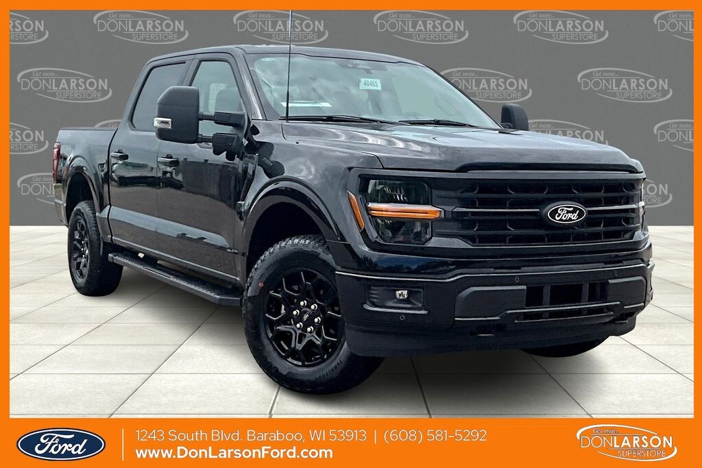Agate Black Metallic 4WD, 4 Pickup Box Tie-Down Plates, 4-Wheel Disc Brakes, 6 Speakers, ABS brakes, Air Conditioning, Alloy wheels, AM/FM radio: SiriusXM with 360L, Auto High-beam Headlights, Bed Utility Package, Brake assist, Bumpers: chrome, Chrome wheels, Cloth 40/20/40 Front Seat, Compass, Delay-off headlights, Driver door bin, Driver vanity mirror, Dual front impact airbags, Dual front side impact airbags, Electronic Stability Control, Emergency communication system: SYNC 4 911 Assist, Equipment Group 302A Mid, Front anti-roll bar, Front Center Armrest, Front fog lights, Front License Plate Bracket, Front reading lights, Front wheel independent suspension, Fully automatic headlights, Heated door mirrors, Illuminated entry, LED Box Lighting, Low tire pressure warning, Manual-Folding Heated Pwr Glass Trailer Tow Mirror, Occupant sensing airbag, Outside temperature display, Overhead airbag, Overhead console, Panic alarm, Passenger door bin, Passenger vanity mirror, Power door mirrors, Power steering, Power windows, Radio data system, Radio: AM/FM Stereo w/SiriusXM 360L, Rear Parking Sensors, Rear reading lights, Rear step bumper, Rear window defroster, Remote keyless entry, Security system, Speed control, Split folding rear seat, Steering wheel mounted audio controls, SYNC 4 w/Enhanced Voice Recognition, Tachometer, Tailgate Step w/Tailgate Work Surface, Telescoping steering wheel, Tilt steering wheel, Tow/Haul Package, Traction control, Tray Style Floor Liner w/Carpet Mats, Trip computer, Variably intermittent wipers, Voltmeter, Wheels: 18" Chrome-Like PVD, 4WD. 2025 Ford F-150 XLT 4WD 10-Speed Automatic 3.5L V6 EcoBoost