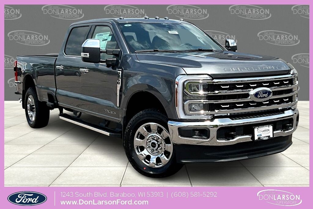Carbonized Gray Metallic 4WD, 4-Wheel Disc Brakes, 5th Wheel/Gooseneck Hitch Prep Package, 6" Angular Bright Anodized Step Bars, 8 Speakers, ABS brakes, Adjustable pedals, Air Conditioning, All-Weather Floor Mats, Alloy wheels, AM/FM radio: SiriusXM with 360L, Auto High-beam Headlights, Auto-dimming Rear-View mirror, Automatic temperature control, BLIS w/Cross-Traffic Alert, Brake assist, Bumpers: chrome, Chrome Door Handles, Chrome Exhaust Tip, Chrome Package, Compass, Delay-off headlights, Driver door bin, Driver vanity mirror, Dual AGM 68 AH Battery, Dual front impact airbags, Dual front side impact airbags, Electronic Stability Control, Emergency communication system: SYNC 4 911 Assist, F-250 >10K GVWR Package, Flow-Through Console, Front & Rear Wheel Well Liners (Pre-Installed), Front ActiveX Trimmed 40/Console/40 Seats, Front anti-roll bar, Front Bucket Seats, Front Center Armrest, Front dual zone A/C, Front fog lights, Front License Plate Bracket, Front reading lights, Front Splash Guards/Mud Flaps (Pre-Installed), Fully automatic headlights, FX4 Off-Road Package, Garage door transmitter, Heated door mirrors, Heated front seats, Heated rear seats, Heated steering wheel, Heavy-Service Front Suspension Package, High Capacity 11.6" Axle Upgrade Package, Hill Descent Control, Illuminated entry, LED Roof Clearance Lights, Low tire pressure warning, Memory seat, Navigation System, Off-Road Specifically Tuned Shock Absorbers, Order Code 608A, Outside temperature display, Overhead airbag, Overhead console, Panic alarm, Passenger door bin, Passenger vanity mirror, Pedal memory, Power door mirrors, Power driver seat, Power passenger seat, Power steering, Power windows, Privacy Glass, Radio: B&O Sound System by Bang & Olufsen, Rain sensing wipers, Rear Parking Sensors, Rear reading lights, Rear seat center armrest, Rear Splash Guards/Mud Flaps (Pre-Installed), Rear step bumper, Rear window defroster, Remote keyless entry, Security system, SiriusXM Radio w/360L, Speed control, Split folding rear seat, Steering wheel mounted audio controls, SYNC 4 w/Enhanced Voice Recognition, Tachometer, Tailgate Step & Handle, Telescoping steering wheel, Tilt steering wheel, Tough Bed Spray-In Bedliner, Traction control, Trip computer, Turn signal indicator mirrors, Twin Panel Power Moonroof, Unique Chrome Mirror Caps, Unique FX4 Off-Road Box Decal, Upfitter Switches (6), Variably intermittent wipers, Ventilated front seats, Wheels: 18" Bright Machined & Carbonized Gray Alum, Wheels: 20" Chrome PVD Aluminum, 4WD. 2025 Ford F-250SD Lariat 4WD 10-Speed Automatic Power Stroke 6.7L V8 DI 32V OHV Turbodiesel
