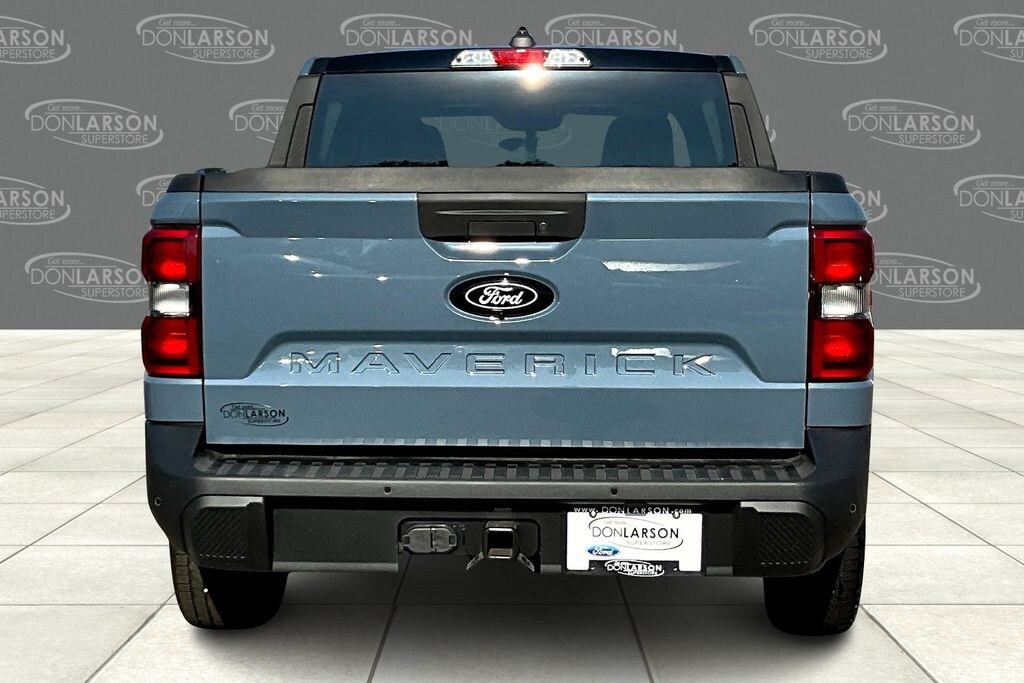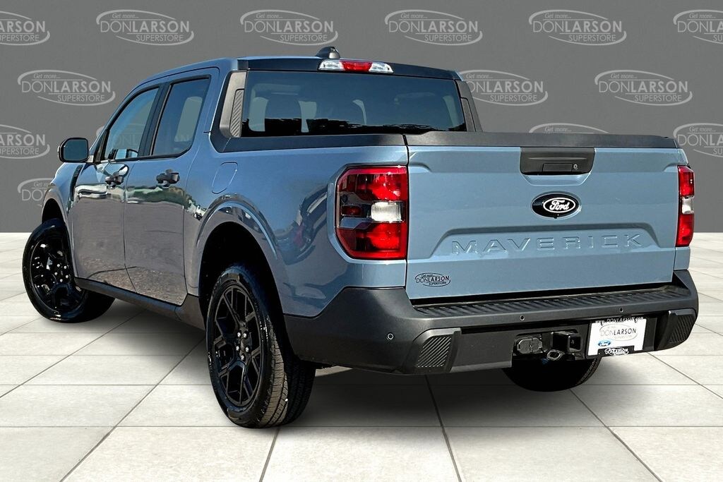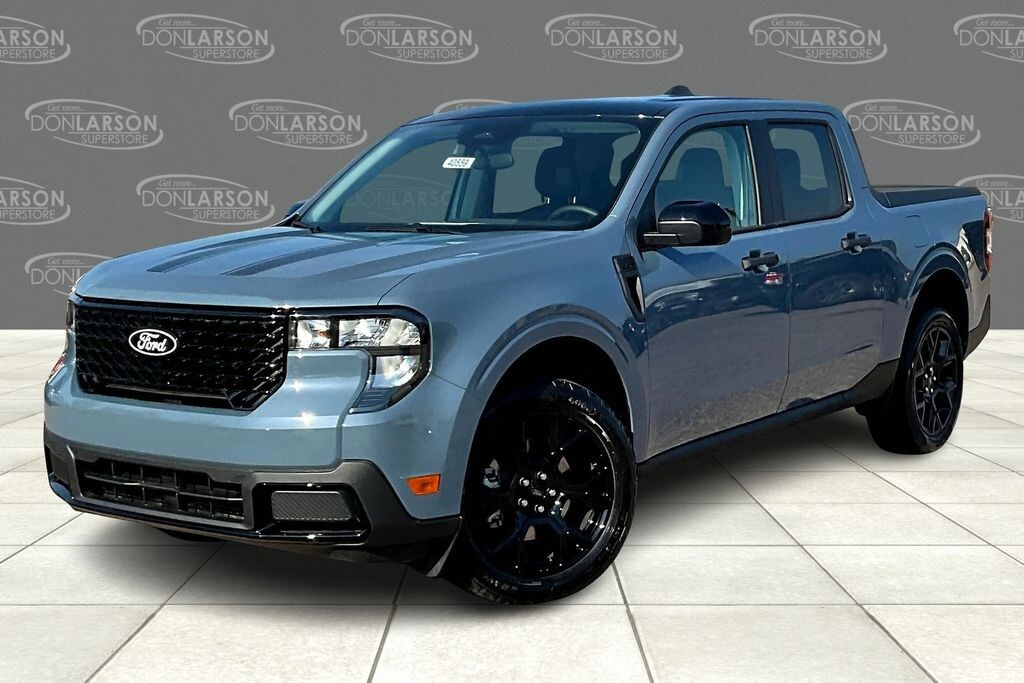 Azure Gray Metallic Tri-Coat 2.91 Axle Ratio, 4-Wheel Disc Brakes, 6 Speakers, ABS brakes, Air Conditioning, Alloy wheels, AM/FM radio: SiriusXM with 360L, Apple CarPlay/Android Auto, Auto High Beams, Auto High-beam Headlights, Automatic temperature control, Brake assist, Bumpers: body-color, Compass, Delay-off headlights, Driver door bin, Driver vanity mirror, Dual front impact airbags, Dual front side impact airbags, Electronic Stability Control, Emergency communication system: SYNC 4 911 Assist, Exterior Parking Camera Rear, Four wheel independent suspension, Front anti-roll bar, Front Bucket Seats, Front Center Armrest, Front reading lights, Fully automatic headlights, Illuminated entry, Knee airbag, Low tire pressure warning, Occupant sensing airbag, Outside temperature display, Overhead airbag, Overhead console, Panic alarm, Passenger door bin, Passenger vanity mirror, Power door mirrors, Power steering, Power windows, Pre-Collision Assist w/Automatic Emergency Braking, Radio data system, Radio: AM/FM Stereo w/6 Speakers, Rear anti-roll bar, Rear seat center armrest, Rear step bumper, Rear-View Camera, Remote keyless entry, Security system, SiriusXM w/360L, Speed control, Speed-sensing steering, Steering wheel mounted audio controls, SYNC 4 w/Enhanced Voice Recognition, Telescoping steering wheel, Tilt steering wheel, Traction control, Trip computer, Unique Cloth Front Bucket Seats, Wheels: 17" Carbonized Gray Painted Aluminum. 22/30 City/Highway MPG 2025 Ford Maverick XLT AWD 8-Speed Automatic EcoBoost 2.0L I4 GTDi DOHC Turbocharged VCT