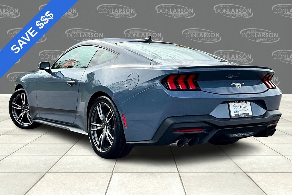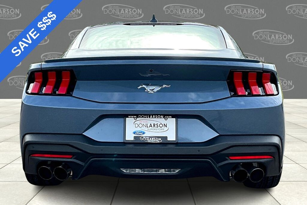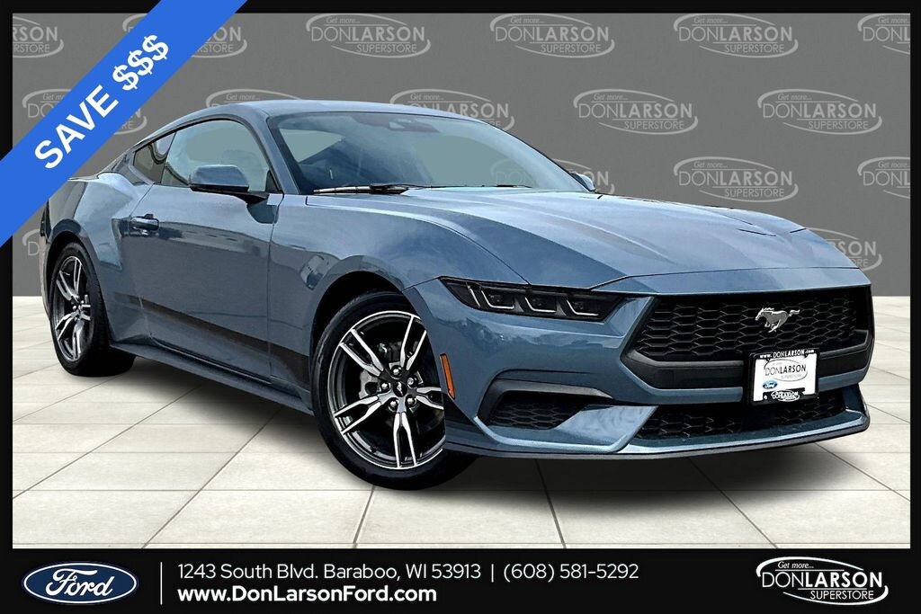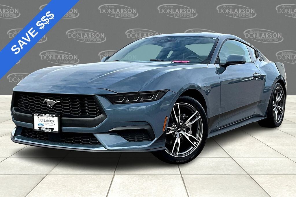 Vapor Blue Metallic 4-Wheel Disc Brakes, ABS brakes, Active Valve Performance Exhaust, Air Conditioning, Alloy wheels, AM/FM Stereo, Auto High-beam Headlights, Automatic temperature control, Brake assist, Bumpers: body-color, Compass, Delay-off headlights, Driver door bin, Driver vanity mirror, Dual front impact airbags, Dual front side impact airbags, Electronic Stability Control, Emergency communication system: 911 Assist, Exterior Parking Camera Rear, Four wheel independent suspension, Front anti-roll bar, Front Bucket Seats, Front Center Armrest, Front dual zone A/C, Front reading lights, Fully automatic headlights, Illuminated entry, Internet access capable: FordPass Connect, Knee airbag, Leather Shift Knob, Low tire pressure warning, Occupant sensing airbag, Outside temperature display, Overhead airbag, Overhead console, Panic alarm, Passenger door bin, Passenger vanity mirror, Power door mirrors, Power steering, Power windows, Radio data system, Rain sensing wipers, Rear anti-roll bar, Rear Parking Sensors, Rear window defroster, Remote keyless entry, Speed control, Speed-sensing steering, Speed-Sensitive Wipers, Split folding rear seat, Sport steering wheel, Steering wheel mounted audio controls, SYNC 4, Tachometer, Telescoping steering wheel, Tilt steering wheel, Traction control, Trip computer, Variably intermittent wipers, Voltmeter, Wheel & Stripe Package, Wheels: 18" x 8" Machined-Face Aluminum, Wheels: 19" x 8.5" Machined-Face Aluminum. 21/32 City/Highway MPG 2025 Ford Mustang EcoBoost Premium RWD 10-Speed Automatic EcoBoost 2.3L I4 GTDi DOHC Turbocharged VCT