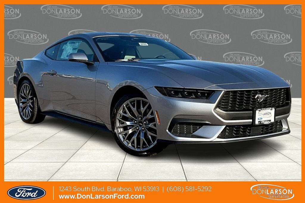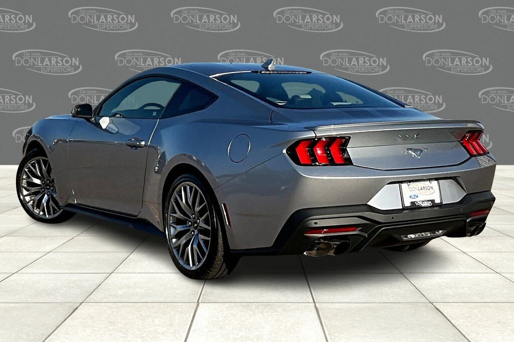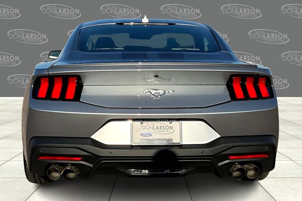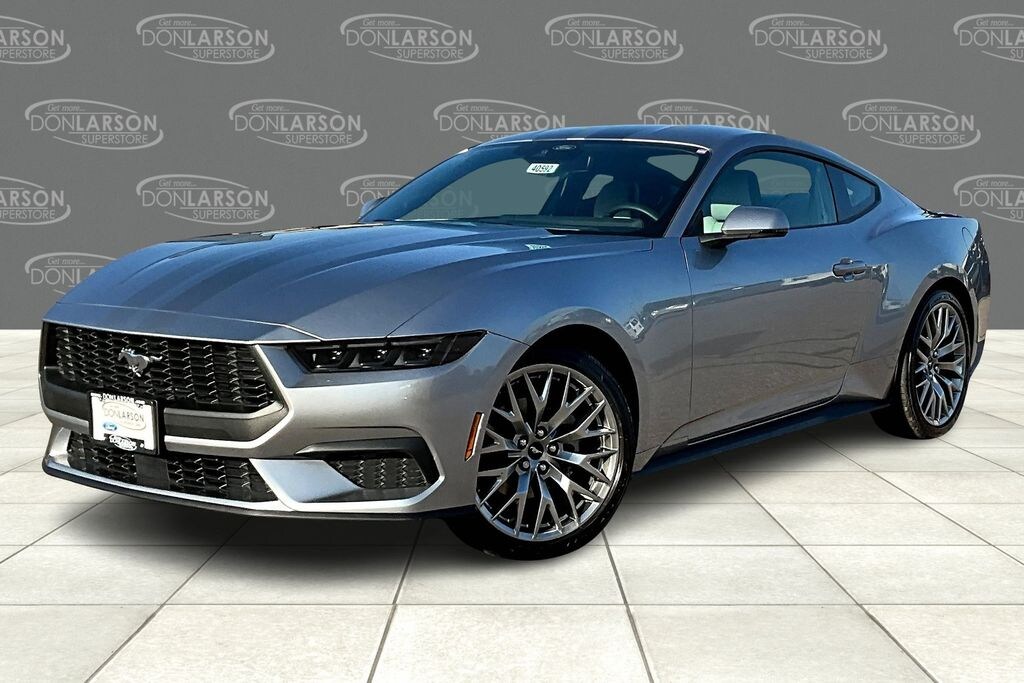 4-Wheel Disc Brakes, ABS brakes, Air Conditioning, Alloy wheels, AM/FM Stereo, Auto High-beam Headlights, Automatic temperature control, Brake assist, Bumpers: body-color, Compass, Delay-off headlights, Driver door bin, Driver vanity mirror, Dual front impact airbags, Dual front side impact airbags, Electronic Stability Control, Emergency communication system: 911 Assist, Exterior Parking Camera Rear, Four wheel independent suspension, Front anti-roll bar, Front Bucket Seats, Front Center Armrest, Front dual zone A/C, Front reading lights, Fully automatic headlights, Illuminated entry, Knee airbag, Leather Shift Knob, Low tire pressure warning, Occupant sensing airbag, Outside temperature display, Overhead airbag, Overhead console, Panic alarm, Passenger door bin, Passenger vanity mirror, Power door mirrors, Power steering, Power windows, Radio data system, Rain sensing wipers, Rear anti-roll bar, Rear Parking Sensors, Rear window defroster, Remote keyless entry, Speed control, Speed-sensing steering, Speed-Sensitive Wipers, Split folding rear seat, Sport steering wheel, Steering wheel mounted audio controls, SYNC 4, Tachometer, Telescoping steering wheel, Tilt steering wheel, Traction control, Trip computer, Variably intermittent wipers, Voltmeter, Wheels: 18" x 8" Machined-Face Aluminum. 21/32 City/Highway MPG 2025 Ford Mustang EcoBoost Premium RWD 10-Speed Automatic EcoBoost 2.3L I4 GTDi DOHC Turbocharged VCT