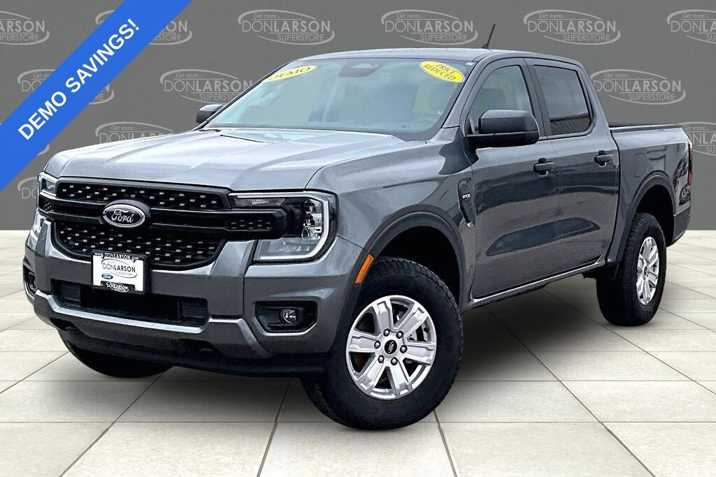 Carbonized Gray Metallic 4WD, 4-Wheel Disc Brakes, 6 Speakers, ABS brakes, Air Conditioning, Alloy wheels, AM/FM radio, AM/FM Stereo, Auto High-Beam Headlamps, Auto High-beam Headlights, BLIS Blind Spot Information System, Brake assist, Bumpers: body-color, Class IV Trailer Hitch Receiver, Cloth Front Bucket Seats, Compass, Delay-off headlights, Driver door bin, Dual front impact airbags, Dual front side impact airbags, Electronic Stability Control, Emergency communication system: SYNC 4 911 Assist, Equipment Group 100A Standard, Ford Co-Pilot360, Front anti-roll bar, Front Bucket Seats, Front Center Armrest, Front fog lights, Front License Plate Bracket, Front reading lights, Front wheel independent suspension, Fully automatic headlights, Halogen Fog Lamps, Illuminated entry, Internet access capable: FordPass Connect 4G, Lane-Keeping System, LED Reflector Headlamps, Low tire pressure warning, Occupant sensing airbag, Outside temperature display, Overhead airbag, Overhead console, Panic alarm, Passenger door bin, Power door mirrors, Power steering, Power windows, Rear reading lights, Rear seat center armrest, Rear step bumper, Remote keyless entry, Reverse Park Aid, Security system, Speed control, Speed-sensing steering, Steering wheel mounted audio controls, STX Appearance Package, STX Fender Badge, SYNC 4A, Telescoping steering wheel, Tilt steering wheel, Tough Bed Spray-In Bedliner, Traction control, Trailer Tow Package, Trip computer, Variably intermittent wipers, Voltmeter, Wheels: 17" Silver-Painted Aluminum, 4WD. 2025 Ford Ranger XL 4WD 10-Speed Automatic EcoBoost 2.3L I4 GTDi DOHC Turbocharged VCT