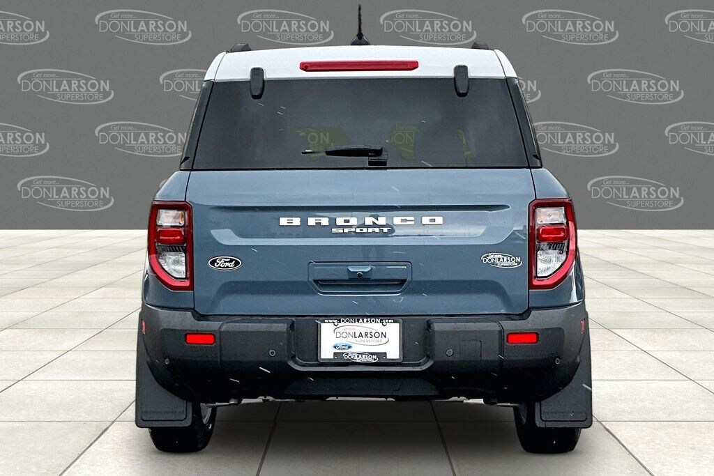 Azure Gray Metallic Tri-Coat 2nd Row Carpeted Seatback, 4-Wheel Disc Brakes, 6 Speakers, ABS brakes, Air Conditioning, Alloy wheels, AM/FM radio: SiriusXM with 360L, AM/FM Stereo, Apple CarPlay/Android Auto, Auto High-beam Headlights, Automatic temperature control, Brake assist, Compass, Convenience Package, Delay-off headlights, Driver door bin, Driver vanity mirror, Dual front impact airbags, Dual front side impact airbags, Electronic Stability Control, Emergency communication system: SYNC 4 911 Assist, Equipment Group 250A Standard Package, Exterior Parking Camera Rear, Ford Connectivity Package (1-Year Included), Four wheel independent suspension, Front and Rear Floor Liners Without Carpet Mats, Front and Rear Splash Guards, Front anti-roll bar, Front Bucket Seats, Front Center Armrest, Front Driver/Passenger Seat Back Map Pockets, Front License Plate Bracket, Front reading lights, Fully automatic headlights, Heated 8-Way Power Driver's Seat, Heated door mirrors, Illuminated entry, Internet access capable: 5G Modem - Ford Connectivity Package, Knee airbag, LED Fog Lamps, Low tire pressure warning, Occupant sensing airbag, Outside temperature display, Overhead airbag, Overhead console, Panic alarm, Passenger door bin, Passenger vanity mirror, Plaid Cloth Front Bucket Seats, Power door mirrors, Power Moonroof, Power steering, Power windows, Premium Wrapped Steering Wheel, Radio data system, Rear anti-roll bar, Rear Parking Sensors, Rear reading lights, Rear seat center armrest, Rear window defroster, Rear window wiper, Remote keyless entry, Security system, SiriusXM with 360L, Speed control, Speed-sensing steering, Speed-Sensitive Wipers, Split folding rear seat, Steering wheel mounted audio controls, SYNC 4 with Enhanced Voice Recognition, Tachometer, Telescoping steering wheel, Tilt steering wheel, Traction control, Trip computer, Variably intermittent wipers, Wheels: 17" Oxford White-Painted Aluminum. 25/30 City/Highway MPG 2026 Ford Bronco Sport Heritage 4WD 8-Speed Automatic 1.5L EcoBoost