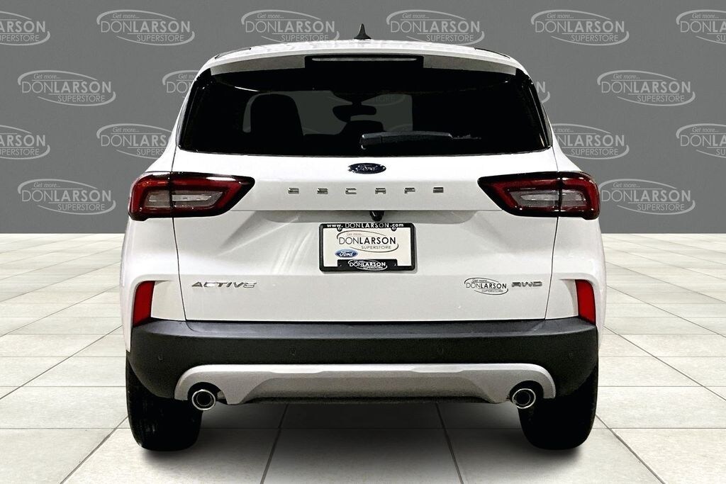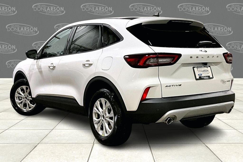 Oxford White AWD, 3.81 Axle Ratio, 4-Way Manual Front Passenger Seat, 4-Wheel Disc Brakes, 6 Speakers, 6-Way Manual Driver Seat, ABS brakes, Air Conditioning, Alloy wheels, AM/FM radio: SiriusXM 360L, Auto High-beam Headlights, Automatic temperature control, Brake assist, Bumpers: body-color, Compass, Delay-off headlights, Driver door bin, Driver vanity mirror, Dual front impact airbags, Dual front side impact airbags, Electronic Stability Control, Emergency communication system: SYNC 4 911 Assist, Ford App, Four wheel independent suspension, Front anti-roll bar, Front Bucket Seats, Front Center Armrest, Front dual zone A/C, Front reading lights, Fully automatic headlights, Illuminated entry, Knee airbag, Low tire pressure warning, Occupant sensing airbag, Outside temperature display, Overhead airbag, Overhead console, Panic alarm, Passenger door bin, Passenger vanity mirror, Power door mirrors, Power steering, Power windows, Radio data system, Radio: AM/FM Stereo with SiriusXM 360L, Rear anti-roll bar, Rear reading lights, Rear seat center armrest, Rear window defroster, Rear window wiper, Remote keyless entry, Speed control, Speed-sensing steering, Speed-Sensitive Wipers, Split folding rear seat, Spoiler, Steering wheel mounted audio controls, SYNC 4, Tachometer, Telescoping steering wheel, Tilt steering wheel, Traction control, Trip computer, Unique Cloth Front Bucket Seats, Variably intermittent wipers, Wheels: 17" Shadow Silver-Painted Aluminum, AWD. 26/32 City/Highway MPG 2026 Ford Escape Active AWD 8-Speed Automatic 1.5L EcoBoost
