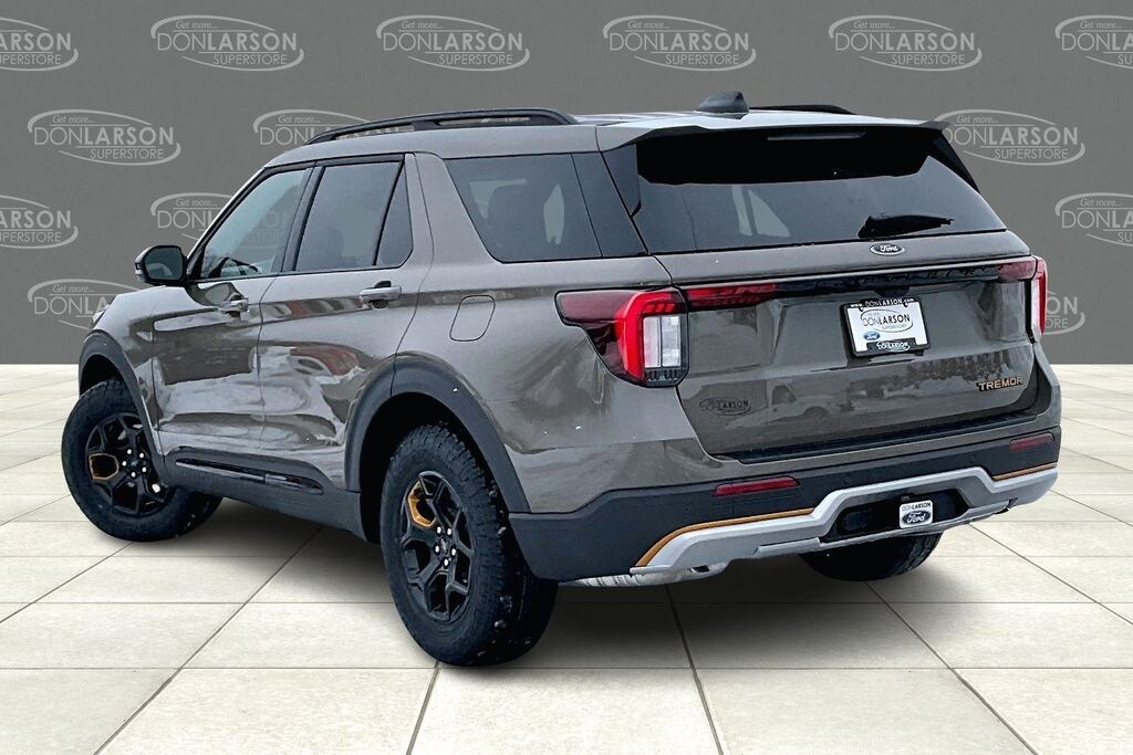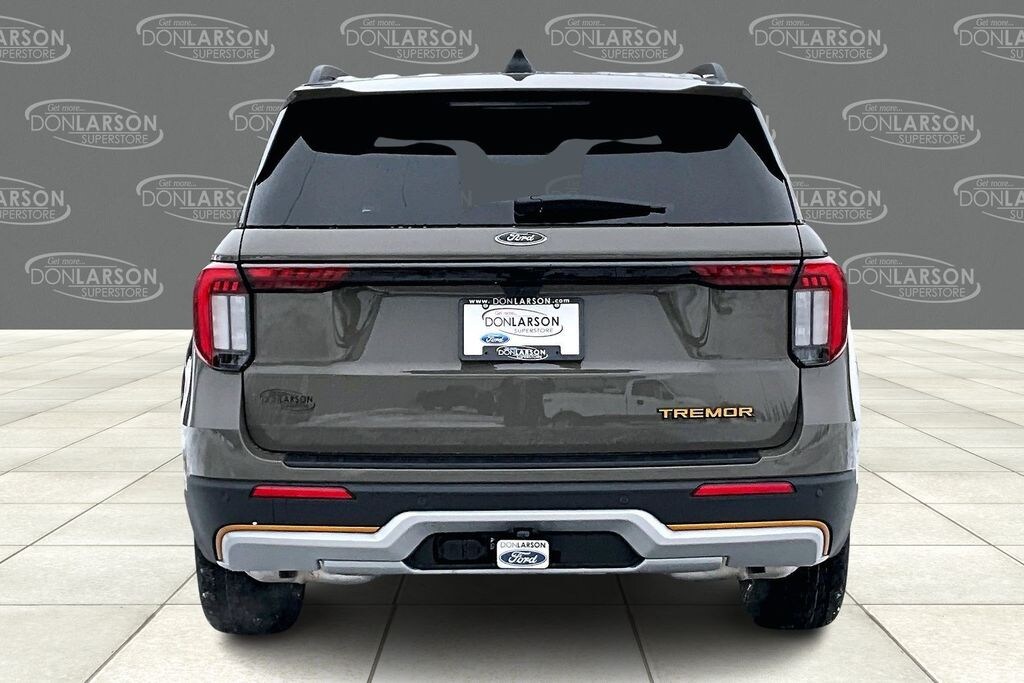 Recent Arrival! Marsh Gray 4WD, 10 Speakers, 3rd Row PowerFold Seats, 3rd row seats: bench, 4-Wheel Disc Brakes, ABS brakes, Air Conditioning, Alloy wheels, AM/FM radio: SiriusXM with 360L, Ambient Lighting, Apple CarPlay/Android Auto, Auto High-beam Headlights, Automatic temperature control, BlueCruise (equipment + 1-Year + 90-Day Plan), BlueCruise Hardware, Brake assist, Bumpers: body-color, Compass, Delay-off headlights, Driver door bin, Driver vanity mirror, Dual front impact airbags, Dual front side impact airbags, Electronic Stability Control, Emergency communication system: 911 Assist, Equipment Group 800A Standard Package, Exterior Parking Camera Rear, Ford Connectivity Package (one-Time Purchase - 7 Years), Four wheel independent suspension, Front anti-roll bar, Front Bucket Seats, Front Center Armrest, Front dual zone A/C, Front fog lights, Front License Plate Bracket, Front reading lights, Fully automatic headlights, Heated door mirrors, Heated front seats, Heated rear seats, Heated steering wheel, Heated/Ventilated Miko Captain's Chairs, Illuminated entry, Knee airbag, Leather steering wheel, Low tire pressure warning, Memory Driver's Seat, Multicontour Seats with Front Active Motion, Navigation System, Occupant sensing airbag, Outside temperature display, Overhead airbag, Overhead console, Panic alarm, Panoramic Fixed Glass Roof with Power Shade, Passenger door bin, Passenger vanity mirror, Power door mirrors, Power driver seat, Power Liftgate, Power passenger seat, Power steering, Power windows, Power-Folding with Autofold Side Mirrors, Radio: B&O Sound System by Bang & Olufsen, Radio: B&O Sound System by Bang and Olufsen, Rain-Sensing Wipers (front Only), Rear air conditioning, Rear anti-roll bar, Rear reading lights, Rear window defroster, Rear window wiper, Remote keyless entry, SecuriCode Keyless Entry Keypad, Security system, Speed control, Speed-sensing steering, Speed-Sensitive Wipers, Split folding rear seat, Spoiler, Sport steering wheel, Steering wheel mounted audio controls, Tachometer, Telescoping steering wheel, Tilt steering wheel, Traction control, Tremor Ultimate Package, Trip computer, Variably intermittent wipers, Ventilated front seats, Wheels: 18" High Gloss Black-Painted Aluminum, 4WD. 2026 Ford Explorer Tremor 4WD 10-Speed Automatic 3.0L EcoBoost V6