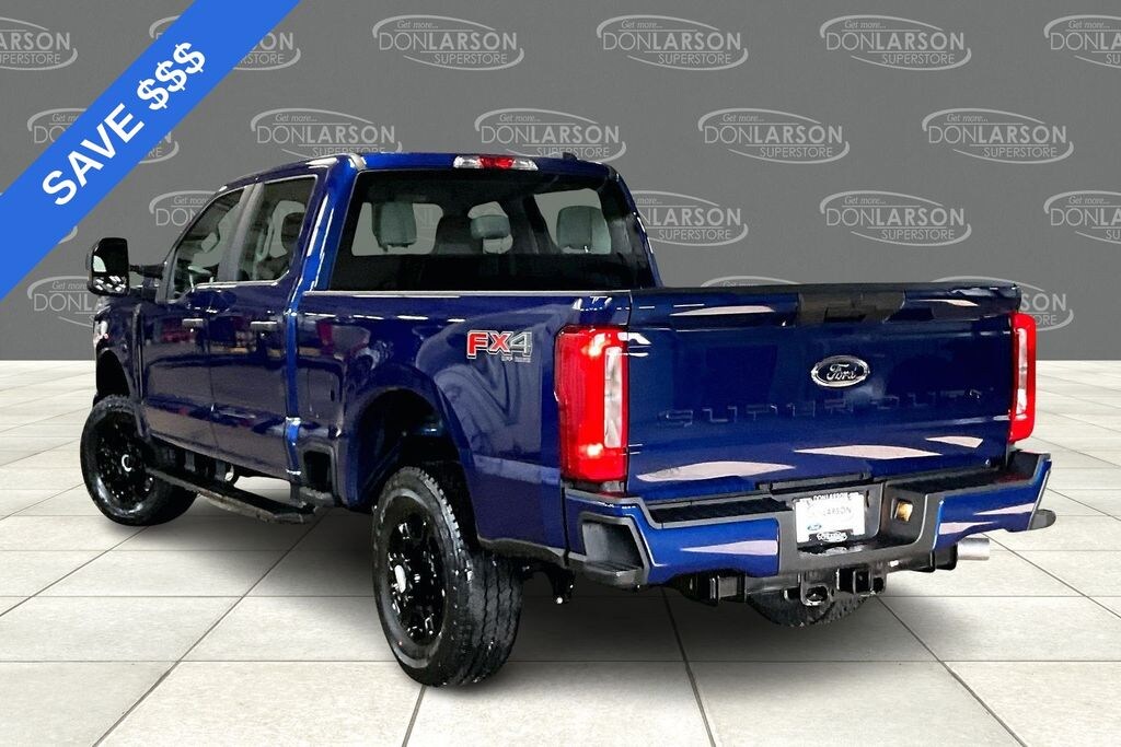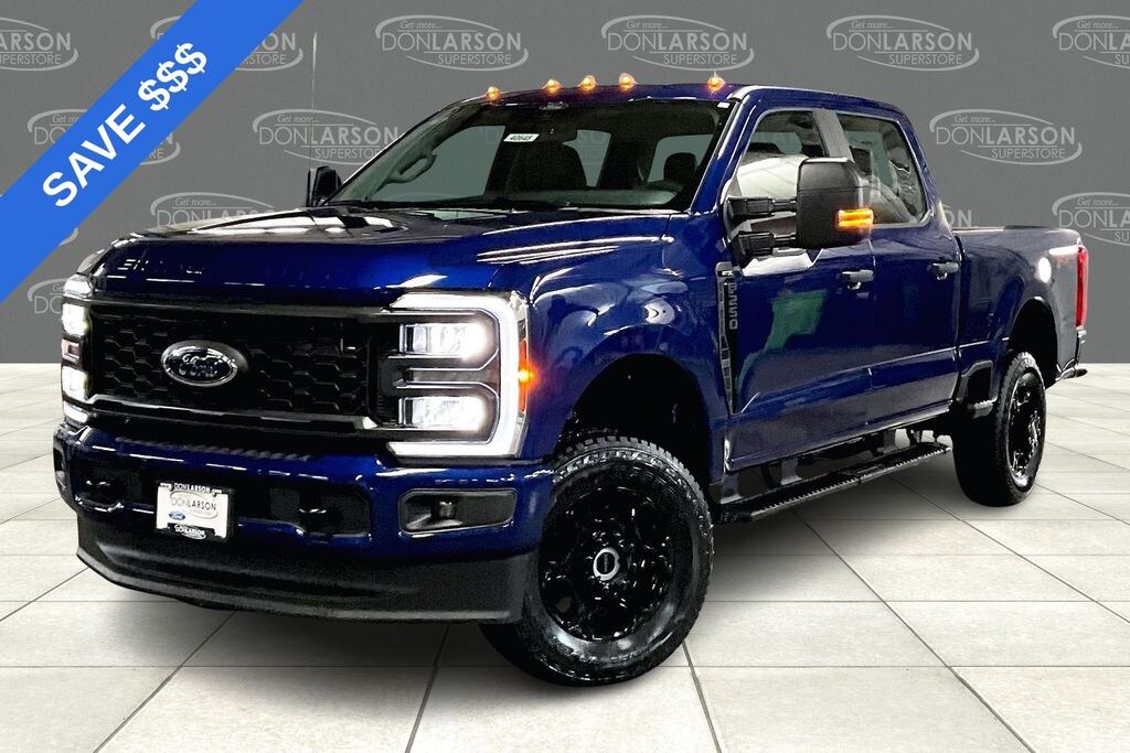 Argon Blue Metallic 4WD, 17" Argent Painted Steel Wheels, 4-Wheel Disc Brakes, 5th Wheel/Gooseneck Hitch Prep Package, 6 Speakers, ABS brakes, Air Conditioning, AM/FM radio, Body-Color Front Bumper, Body-Color Rear Bumper, Brake assist, Cloth 40/20/40 Split Bench Seat, Color-Coordinated Full Carpet with Floor Mats, Compass, Delay-off headlights, Dual front impact airbags, Dual front side impact airbags, Electronic Stability Control, Emergency communication system: SYNC 4 911 Assist, Exterior Parking Camera Rear, Ford Connectivity Package (1-Year Included), Front anti-roll bar, Front Center Armrest w/Storage, Front License Plate Bracket, Front reading lights, Fully automatic headlights, FX4 Off-Road Package, GVWR: 10,000 Lb Payload Package, HD Vinyl 40/20/40 Split Bench Seat, Heated door mirrors, Hill Descent Control, Illuminated entry, Internet access capable: 5G Modem - Ford Connectivity Package, LED Roof Clearance Lights, Low tire pressure warning, Off-Road Specifically Tuned Shock Absorbers, Order Code 600A, Outside temperature display, Overhead airbag, Overhead console, Painted Grille, Panic alarm, Passenger vanity mirror, Platform Running Boards, Power door mirrors, Power steering, Power windows, Radio: AM/FM Stereo with MP3 Player, Rear reading lights, Rear step bumper, Remote keyless entry, Security system, Snow Plow Prep Package, Speed control, Split folding rear seat, Steering wheel mounted audio controls, STX Appearance Package, SYNC 4, Tachometer, Telescoping steering wheel, Tilt steering wheel, Traction control, Trip computer, Turn signal indicator mirrors, Unique FX4 Off-Road Box Decal, Upfitter Switches (6), Variably intermittent wipers, 4WD. 2026 Ford F-250SD XL 4WD 10-Speed Automatic 6.8L V8