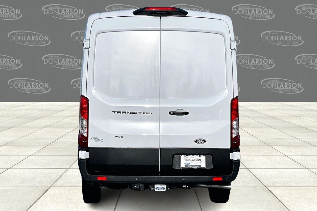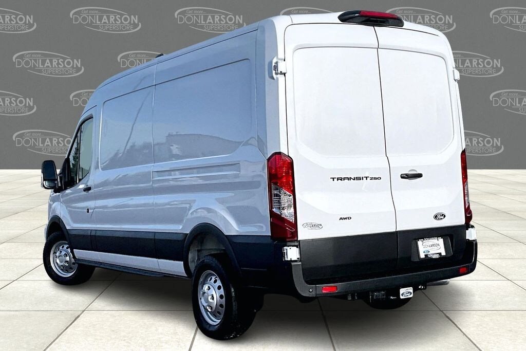 Oxford White 4 Speakers, 4-Wheel Disc Brakes, 4.10 Limited-Slip Axle Ratio, ABS brakes, Air Conditioning, AM/FM radio, AM/FM Stereo, Apple CarPlay/Android Auto, Auto High-beam Headlights, Brake assist, Dark Palazzo Gray Vinyl Bucket Seats, Delay-off headlights, Driver door bin, Driver's Seat Mounted Armrest, Dual front impact airbags, Dual front side impact airbags, Electronic Stability Control, Emergency communication system: 911 Assist, Exterior Parking Camera Rear, Ford Connectivity Package (1-Year Included), Front anti-roll bar, Front Bucket Seats, Front reading lights, Front wheel independent suspension, Fully automatic headlights, Illuminated entry, Low tire pressure warning, Navigation system: Connected Navigation, Occupant sensing airbag, Overhead airbag, Panic alarm, Passenger cancellable airbag, Passenger door bin, Power door mirrors, Power steering, Power windows, Rain sensing wipers, Remote keyless entry, Speed control, Steering wheel mounted audio controls, SYNC 4, Tachometer, Telescoping steering wheel, Tilt steering wheel, Traction control, Variably intermittent wipers, Vinyl Front Bucket Seats, Wheels: 16" Silver Steel with Silver Hubcaps. 2026 Ford Transit-250 AWD 10-Speed Automatic with Overdrive EcoBoost 3.5L V6 GTDi DOHC 24V Twin Turbocharged
