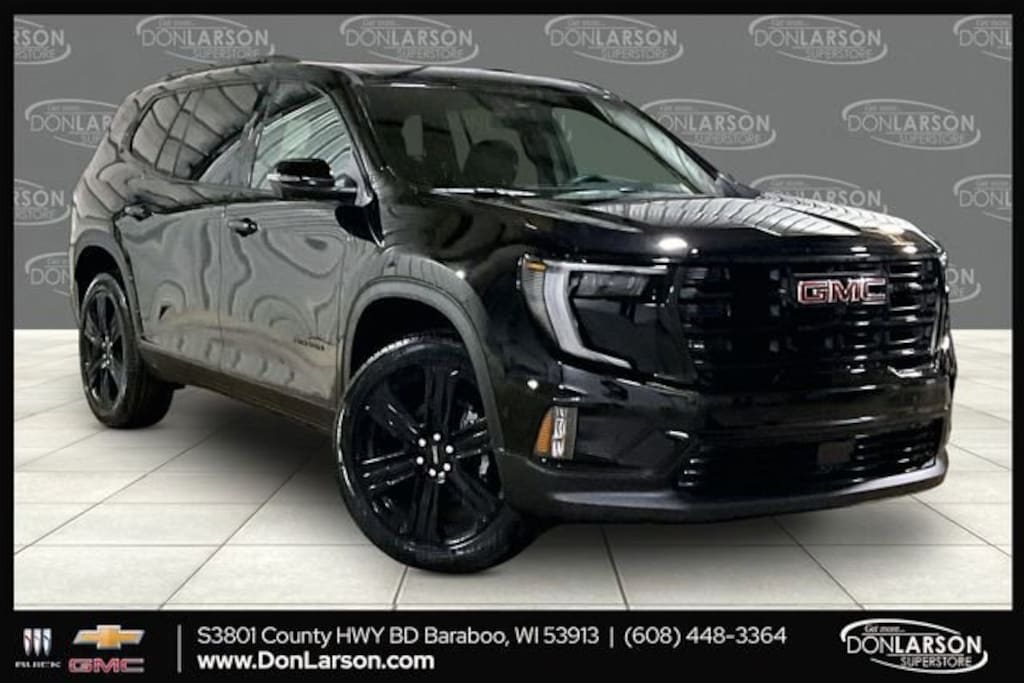 2026 GMC Acadia Elevation AWD, After Dark Cloth, 12 Speakers, 18 x 7.5 Aluminum Wheels, 1st & 2nd Row All-Weather Floor Liner (LPO), 3 Years of OnStar One, 3-Channel Programmable Universal Home Remote, 3.49 Final Drive Axle Ratio, 3rd Row All-Weather Floor Liner (LPO), 3rd row seats: split-bench, 4-Way Manual Front Passenger Seat Adjuster, 4-Wheel Disc Brakes, 6-Way Power Front Passenger Seat Adjuster, 7-Passenger Seating (2-2-3 Seating Configuration), 8-Passenger Seating (2-3-3 Seating Configuration), 8-Way Power Driver Seat Adjuster, 8 Diagonal Head-Up Display, ABS brakes, Air Conditioning, Alloy wheels, AM/FM radio: SiriusXM with 360L, Apple CarPlay/Android Auto, Auto High-beam Headlights, Automatic temperature control, Black Edition, Black Lug Nut & Wheel Lock Kit (LPO), Bodyside moldings, Bose Premium 12-Speaker System w/Sub-Woofer, Brake assist, Bumpers: body-color, Cloth Seat Trim, Compass, CoreTec Seat Trim, Delay-off headlights, Driver 2-Way Power Lumbar Seat Adjuster, Driver Attention Assist, Driver door bin, Driver vanity mirror, Dual front impact airbags, Dual front side impact airbags, Electronic Stability Control, Elevation Premium Package, Emergency communication system: OnStar Services capable, Enhanced Automatic Parking Assist, Exterior Parking Camera Rear, Floor Liner Package (LPO), Four wheel independent suspension, Front & Rear Black GMC Emblems (LPO), Front anti-roll bar, Front Bucket Seats, Front Center Armrest, Front dual zone A/C, Front fog lights, Front License Plate Bracket, Front Passenger Power Lumbar Seat Adjuster, Front reading lights, Fully automatic headlights, Gloss Black Roof Rails, Heated door mirrors, Heated Driver & Front Passenger Seats, Heated front seats, Heated Rear Outboard Seating Positions, Heated steering wheel, Heated Wiper Park, High Gloss Black Door Upper Moldings, Illuminated entry, Integrated Cargo Liner (LPO), Laminated Acoustic Glass, Leather steering wheel, Low tire pressure warning, Luxury Package, Navigation System, Occupant sensing airbag, Outside temperature display, Overhead airbag, Overhead console, Panic alarm, Passenger door bin, Passenger vanity mirror, Performance Suspension, Power door mirrors, Power driver seat, Power Liftgate, Power steering, Power windows, Preferred Equipment Group 4SD, Radio data system, Radio: 15 Premium GMC Infotainment System, Rear air conditioning, Rear anti-roll bar, Rear reading lights, Rear seat center armrest, Rear side impact airbag, Rear window defroster, Rear window wiper, Remote keyless entry, Security system, SiriusXM w/360L, Speed control, Speed-sensing steering, Split folding rear seat, Spoiler, Sport steering wheel, Steering wheel mounted audio controls, Super Cruise, Super Cruise Package, Tachometer, Telescoping steering wheel, Tilt steering wheel, Traction control, Trip computer, Turn signal indicator mirrors, Variably intermittent wipers, Voltmeter, Wheels: 22 x 8.5 Gloss Black Aluminum, AWD, After Dark Cloth.