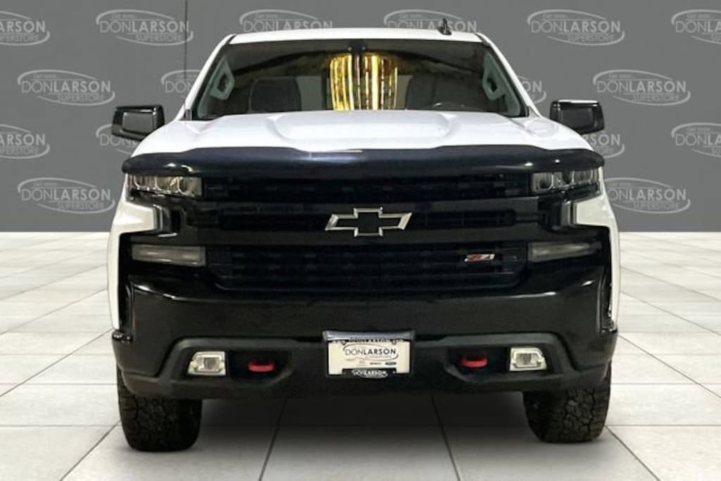 Recent Arrival! 8-Speed Automatic, 4WD, Black Cloth, 10-Way Power Driver Seat w/Lumbar, 12-Volt Rear Auxiliary Power Outlet, 120-Volt Bed Mounted Power Outlet, 120-Volt Instrument Panel Power Outlet, 170 Amp Alternator, 2 USB Ports, 2 USB Ports (First Row), 3.23 Rear Axle Ratio, 4-Way Manual Driver Seat Adjuster, 4-Wheel Disc Brakes, 4.2 Diagonal Color Display Driver Info Center, 40/20/40 Front Split-Bench Seat, 6 Speakers, 6-Speaker Audio System, ABS brakes, Air Conditioning, All-Weather Floor Liner (LPO) (AAK), Alloy wheels, AM/FM radio: SiriusXM, Apple CarPlay/Android Auto, Auxiliary External Transmission Oil Cooler, Bluetooth® For Phone, Brake assist, Chevrolet Connected Access, Chevrolet w/4G LTE, Cloth Rear Seat w/Storage Package, Cloth Seat Trim, Color-Keyed Carpeting Floor Covering, Compass, Convenience Package II, Convenience Package w/Buckets Seats, Deep-Tinted Glass, Delay-off headlights, Driver door bin, Driver vanity mirror, Dual Exhaust w/Polished Outlets, Dual front impact airbags, Dual front side impact airbags, Dual-Zone Automatic Climate Control, Electric Rear-Window Defogger, Electrical Lock Control Steering Column, Electronic Cruise Control, Electronic Stability Control, Floor Mounted Console, Front anti-roll bar, Front Bucket Seats, Front Center Armrest w/Storage, Front fog lights, Front LED Fog Lamps, Front License Plate Kit, Front reading lights, Front wheel independent suspension, Fully automatic headlights, HD Radio, HD Rear Vision Camera, Heated door mirrors, Heated Driver & Front Passenger Seats, Heated Steering Wheel, Heavy-Duty Rear Locking Differential, High Capacity Air Filter, High Gloss Black Grille, High Gloss Black Mirror Caps, Hill Descent Control, Hitch Guidance, Illuminated entry, Integrated Trailer Brake Controller, Keyless Open & Start, Leather Wrapped Steering Wheel, LED Cargo Area Lighting, Low tire pressure warning, Manual Tilt Wheel Steering Column, Manual Tilt/Telescoping Steering Column, Molded Black Splash Guards (LPO), Occupant sensing airbag, Off-Road Suspension w/2 Lift, OnStar & Chevrolet Connected Services Capable, Outside temperature display, Overhead airbag, Overhead console, Panic alarm, Passenger door bin, Passenger vanity mirror, Performance Red Recovery Hooks, Power Door Locks, Power door mirrors, Power Front Windows w/Driver Express Up/Down, Power Front Windows w/Passenger Express Down, Power Rear Windows w/Express Down, Power Sliding Rear Window w/Rear Defogger, Power steering, Power windows, Preferred Equipment Group 2LT, Premium audio system: Chevrolet Infotainment System 3, Premium Bose 7-Speaker Sound System, Radio data system, Radio: Chevrolet Infotainment 3 Plus System, Radio: Chevrolet Infotainment 3 System, Rear 60/40 Folding Bench Seat (Folds Up), Rear Dual USB Charging-Only Ports, Rear reading lights, Rear step bumper, Rear Vision Camera, Rear window defroster, Remote keyless entry, Remote Vehicle Starter System, Security system, Single-Zone Manual/Semi-Automatic Air Conditioning, SiriusXM Radio, Speed control, Speed-sensing steering, Split folding rear seat, Steering Wheel Audio Controls, Steering wheel mounted audio controls, Suspension Package, Tachometer, Theft Deterrent System (Unauthorized Entry), Tilt steering wheel, Traction control, Trailering Package, Trip computer, Universal Home Remote, Variably intermittent wipers, Voltmeter, Wheels: 18 x 8.5 Black Painted Aluminum, 8-Speed Automatic, 4WD, Black Cloth.JUST GET MORE AT THE DON LARSON SUPERCENTER! Proudly servicing Baraboo, Wisconsin Dells, Portage, North Freedom, Middleton, Madison, Mauston, Lodi, Lake Delton, Waunakee, De Forest, Sun Prairie, and Reedsburg!Please call today to schedule your test drive on this ... 2019 Chevrolet Silverado 1500 LT Trail Boss EcoTec3 5.3L V8 Summit White