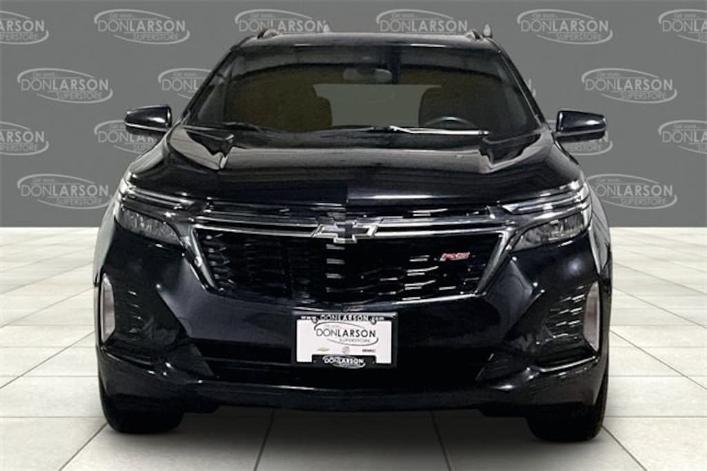 Recent Arrival! Local Trade, One Owner, NO ACCIDENT HISTORY, Remote Start, Backup Camera, Cruise Control, Heated Seats, Keyless Entry, Portable Audio Connection, Power Locks, Power Windows, Steering Wheel Controls, AWD / 4WD / 4X4, AWD, 19 Aluminum Wheels, 2 Rear USB Charging-Only Ports, 2 USB Ports & Auxiliary Input Jack, 2-Way Power Driver Lumbar Control Seat Adjuster, 3.87 Final Drive Axle Ratio, 4-Wheel Disc Brakes, 6 Speakers, 6-Speaker Audio System Feature, ABS brakes, Air Conditioning, All-Weather Floor Liners (LPO), Alloy wheels, AM/FM radio: SiriusXM, Auto High-beam Headlights, Automatic temperature control, Bluetooth® For Phone, Brake assist, Bumpers: body-color, Cold Air Grille Shutter, Compass, Delay-off headlights, Driver 8-Way Power Seat Adjuster, Driver door bin, Driver vanity mirror, Dual front impact airbags, Dual front side impact airbags, Electronic Stability Control, Emergency communication system: OnStar and Chevrolet connected services capable, Floor Liner Package (LPO), Four wheel independent suspension, Front anti-roll bar, Front Bucket Seats, Front Center Armrest, Front dual zone A/C, Front Passenger 4-Way Manual Seat Adjuster, Front reading lights, Fully automatic headlights, Heated door mirrors, Heated Driver & Front Passenger Seats, Heated front seats, Illuminated entry, Integrated Cargo Liner (LPO), Lane Change Alert w/Side Blind Zone Alert, Low tire pressure warning, Occupant sensing airbag, Outside temperature display, Overhead airbag, Overhead console, Panic alarm, Passenger door bin, Passenger vanity mirror, Power door mirrors, Power driver seat, Power Liftgate, Power steering, Power windows, Preferred Equipment Group 1RS, Premium audio system: Chevrolet Infotainment 3, Premium Cloth Seat Trim, Radio data system, Radio: Chevrolet Infotainment 3 System w/AM/FM, Rear anti-roll bar, Rear Cross Traffic Alert, Rear reading lights, Rear seat center armrest, Rear window defroster, Rear window wiper, Remote keyless entry, Roof rack: rails only, Security system, Side Blind Zone & Rear Cross Traffic, SiriusXM Radio, Speed control, Speed-sensing steering, Split folding rear seat, Spoiler, Steering wheel mounted audio controls, Tachometer, Telescoping steering wheel, Tilt steering wheel, Traction control, Trip computer, Variably intermittent wipers, Wireless Apple CarPlay/Wireless Android Auto, Android Auto, CarPlay, AWD. Clean CARFAX. CARFAX One-Owner.JUST GET MORE AT THE DON LARSON SUPERCENTER! Proudly servicing Baraboo, Wisconsin Dells, Portage, North Freedom, Middleton, Madison, Mauston, Lodi, Lake Delton, Waunakee, De Forest, Sun Prairie, and Reedsburg!Please call today to schedule your test drive on this ... 2023 Chevrolet Equinox RS 1.5L DOHC Mosaic Black Metallic